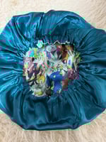 Emerald green/Light green satin Sonic and friends drawstring reversible hair bonnet.